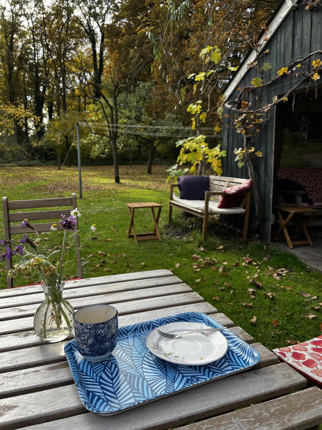 Op 1/4 of 3/4 (afhankelijk of je de route links of rechtsom wandelt) vind je Theetuin Veldwijk (Almenseweg 57). In het seizoen (maart - december) is deze geopend op woensdag en vrijdag.
