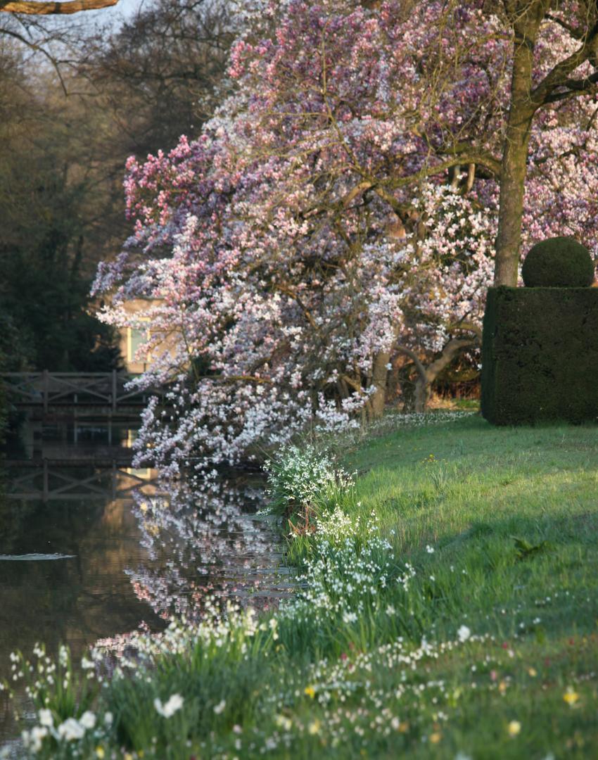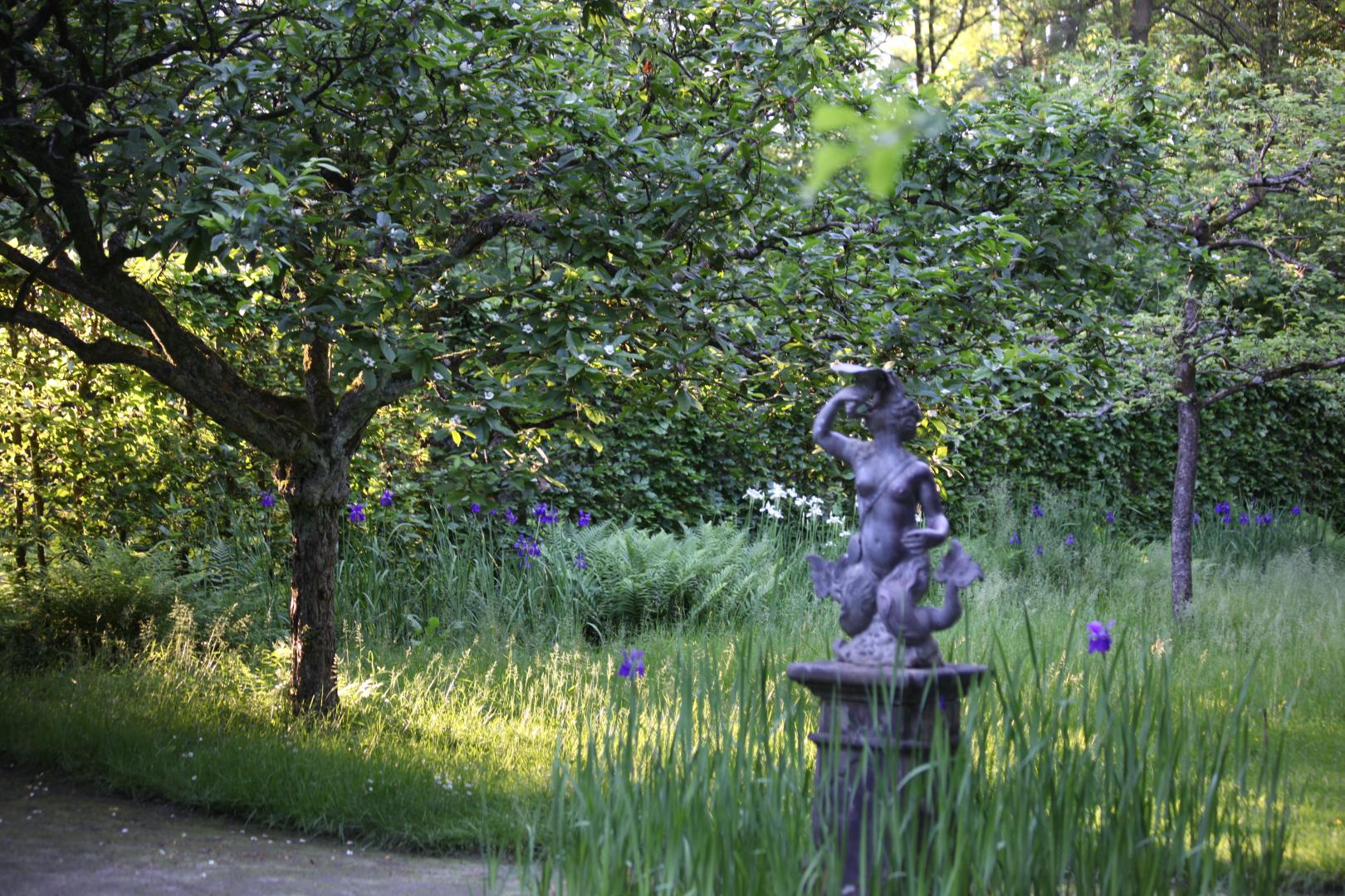 De tuin vormt een levend geheel waarin beek en vijvers, heemplanten, varens, een honderd meter lange beukenloofgang, bruggen, fonteinen en beelden zich vloeiend aaneenrijgen. Iedere lijn en overgang toont de aandacht en het vakmanschap waarmee de tuin generaties lang is verzorgd.