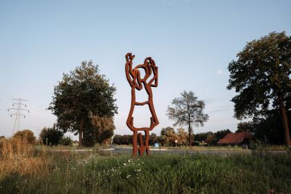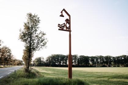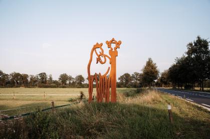 Voor dit beeld gebruikte de kunstenaar het silhouet van Annie Visschers-Markerink. Zij woont hier vlakbij, in buurtschap Nettelhorst. Annie houdt van dit landschap. Daarom zette ze zich tomeloos in voor de buurt, de boeren en de politiek. Dit is haar rustmoment, even in stilte genieten van de omgeving. Kom er gerust bij.