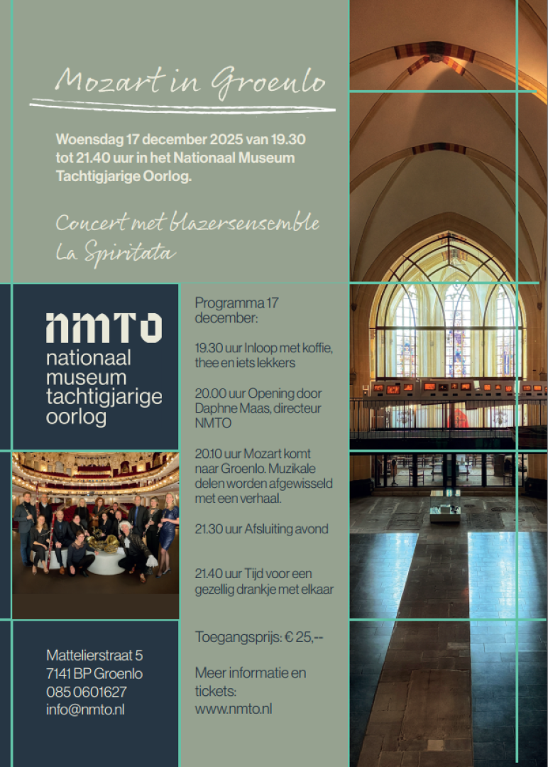 Er wacht u iets bijzonders in Groenlo. Op woensdag 17 december organiseren we voor het eerst een concert in het Nationaal Museum Tachtigjarige Oorlog – een sfeervolle historische locatie die deze winteravond nog meer glans geeft.