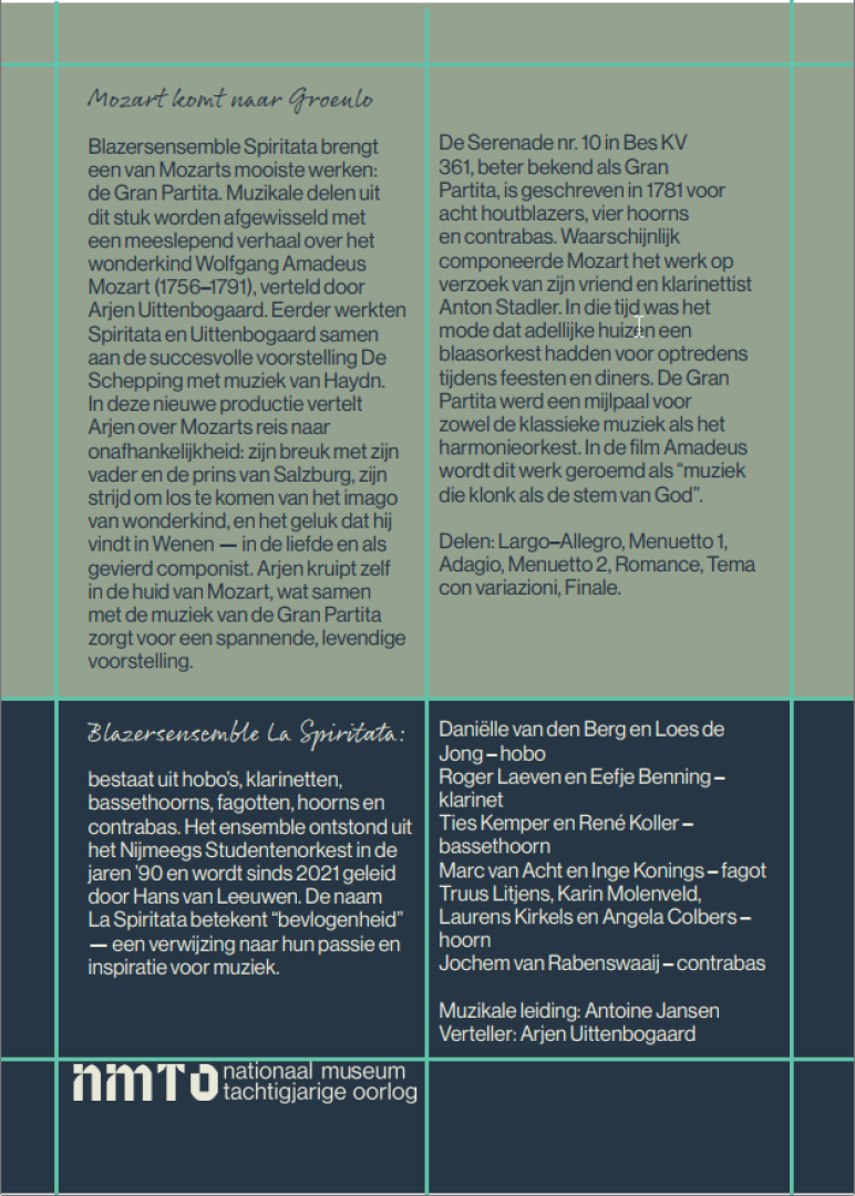 Blazersensemble La Spiritata speelt Mozarts prachtige Gran Partita, afgewisseld met een meeslepend verhaal van Arjen Uittenbogaard, die Mozart tot leven brengt in woord en muziek. Een avond vol warmte en inspiratie.