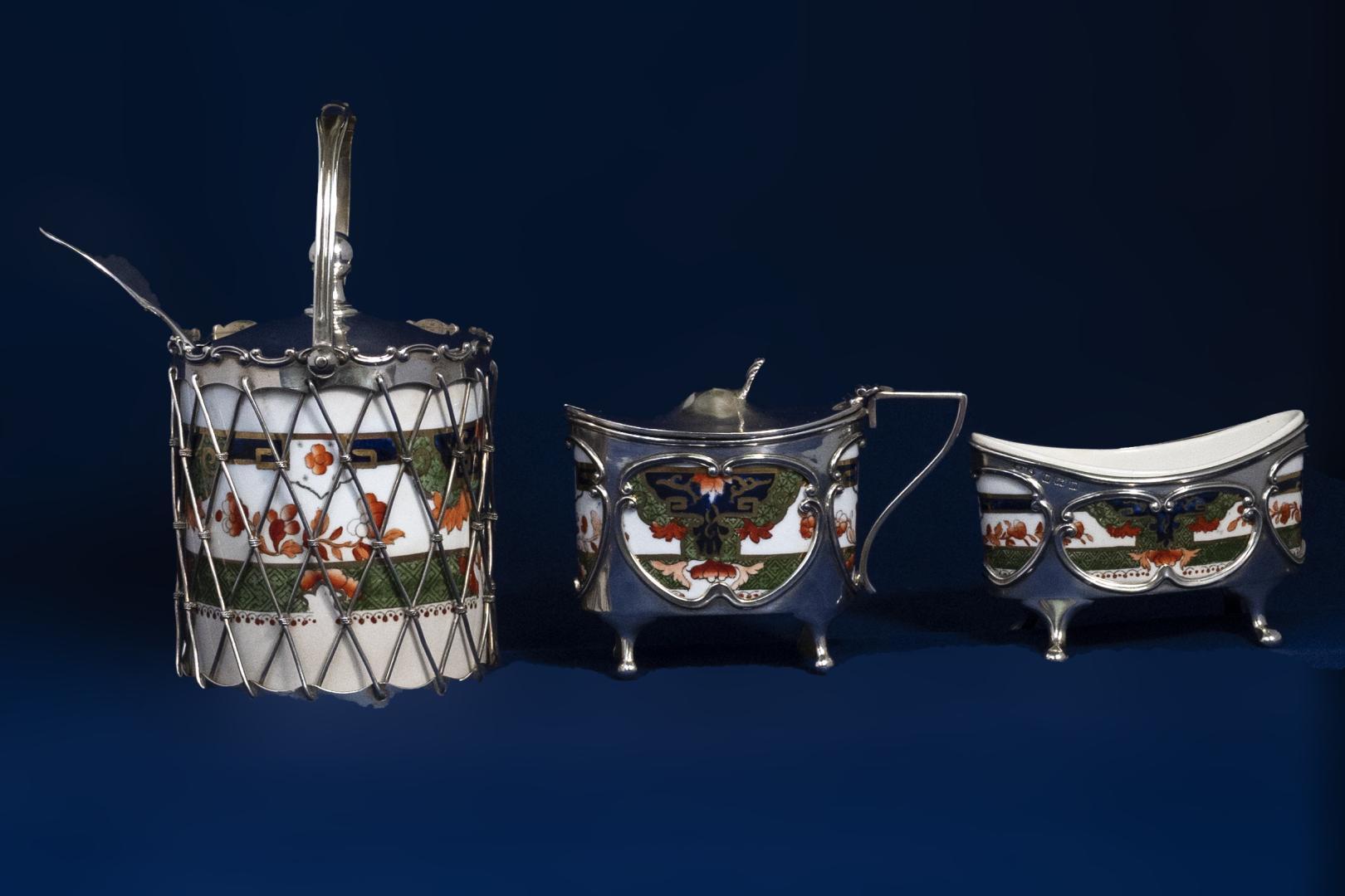 Het verhaal begint dicht bij huis. Doesburg staat bekend als de mosterdstad van Nederland. De expositie borduurt voort op de vaste collectie zilveren mosterdpotjes en lepeltjes – en laat zien waarom zilver en mosterd elkaar juist niet verdragen. In de vitrines ontdek je hoe materialen als parelmoer, glas en keramiek die spanning overbruggen. Een zilveren mosterdpot met een Imari-binnenwerk is daar een schitterend voorbeeld van.