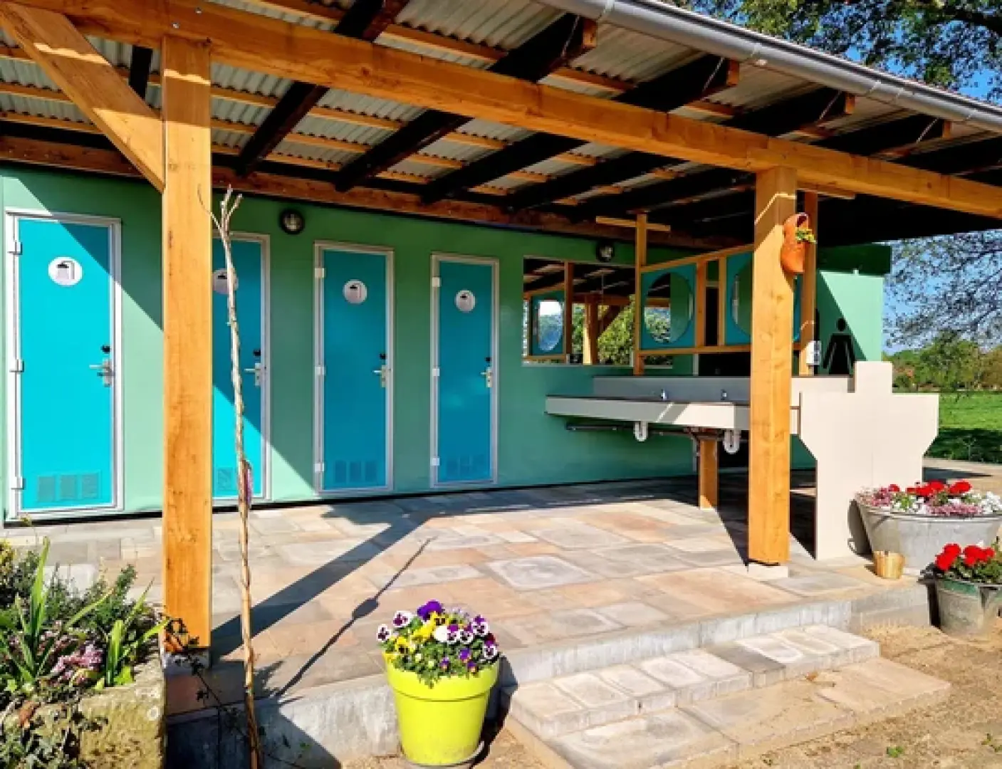 In het sanitairgebouw bevinden zich 3 toiletten, 3 urinoirs, diverse wastafels en 4 douches. Aan de buitenzijde van het sanitairgebouw zijn verschillende afwasplekken waar je water kunt pakken en kunt afwassen.