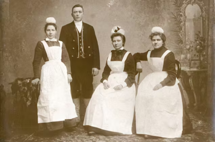 Maak op een interactieve manier kennis met de bewoners en hun personeel in het onderhuis. Ook leuk voor kinderen. Ze kunnen op het bed van de huisknecht liggen, een bloemenboeket samenstellen en een monogram op bestek tekenen. In het onderhuis is de museumwinkel en de theeschenkerij met terras aan de vijver gevestigd, waar iedereen een kopje koffie of thee kan drinken.