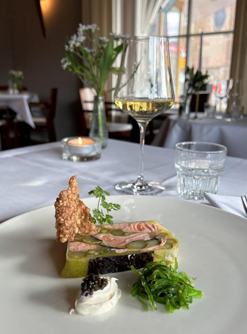 Hûre de saumon; terrine van Schotse zalm met crème van waterkers