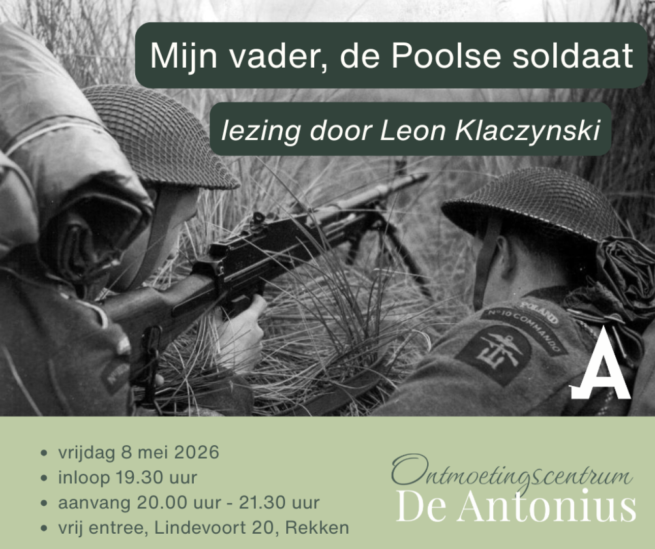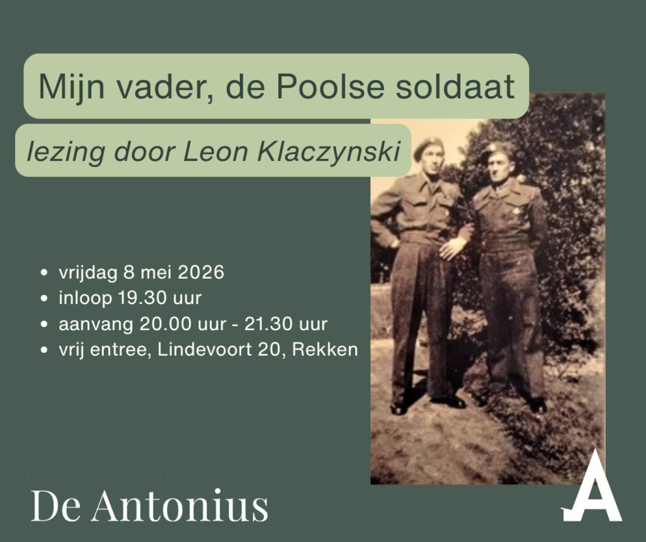 In een tijd waarin we onze vrijheid herdenken en vieren, komt geschiedenis soms heel dichtbij. Op vrijdag 8 mei is dat zeker het geval in de Antonius in Rekken. Dan vertelt Léon Klaczynski uit Haaksbergen het indrukwekkende verhaal van zijn vader, een Poolse soldaat die meevocht voor de bevrijding van Nederland.