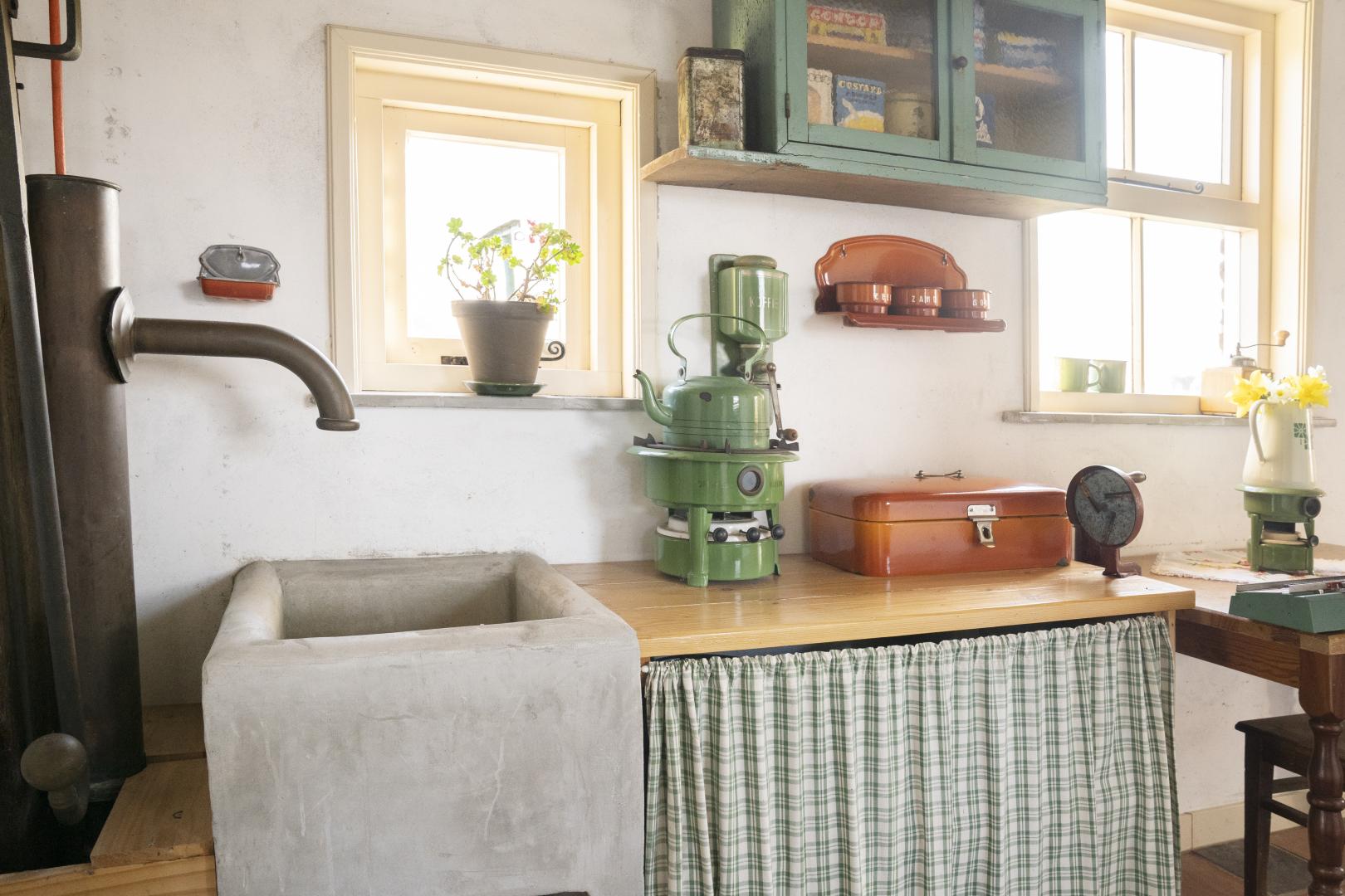 Het kleine (misschien wel het kleinste) openluchtmuseum staat in het buitengebied van Megchelen en geeft een beeld van de situatie, waarin veel inwoners verkeerden direct na de tweede wereldoorlog. Van 1945 tot 1967 bood de woning, met slechts één slaapkamer, onderdak aan 3 verschillende families, waaronder een gezin met 3 kinderen.