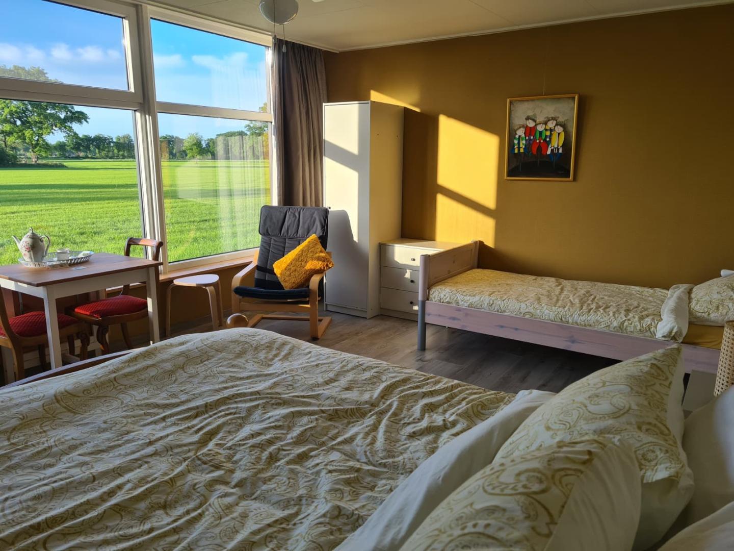 De ruimte is drempelvrij en voorzien van brede deuren, beugels bij toilet en douche, en is daarmee ook toegankelijk voor rolstoelgebruikers. Buiten nodigt een grote veranda op het oosten uit om te genieten van het weidse uitzicht en de rust van de natuur. In de donker kun je verlichting aandoen en/of met een vuurkorf nagenieten. Parkeren kan op eigen terrein.