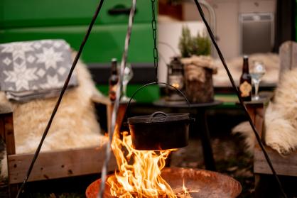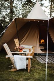 Op de camping staan ingerichte tipi’s en houten huisjes die je kan huren. Daarnaast hebben we 50 kampeerplaatsen. Of wat dacht je van een wildernisspa experience? Geniet voor een toeslag van onze op-hout-gestookte hottub en sauna. ’s Morgens bakken we voor jou verse broodjes en in de middag kan je genieten van een Zweedse Fika met kaneelbroodjes en vers gezette koffie. In onze receptie vind je namelijk een kleine koffie bar.