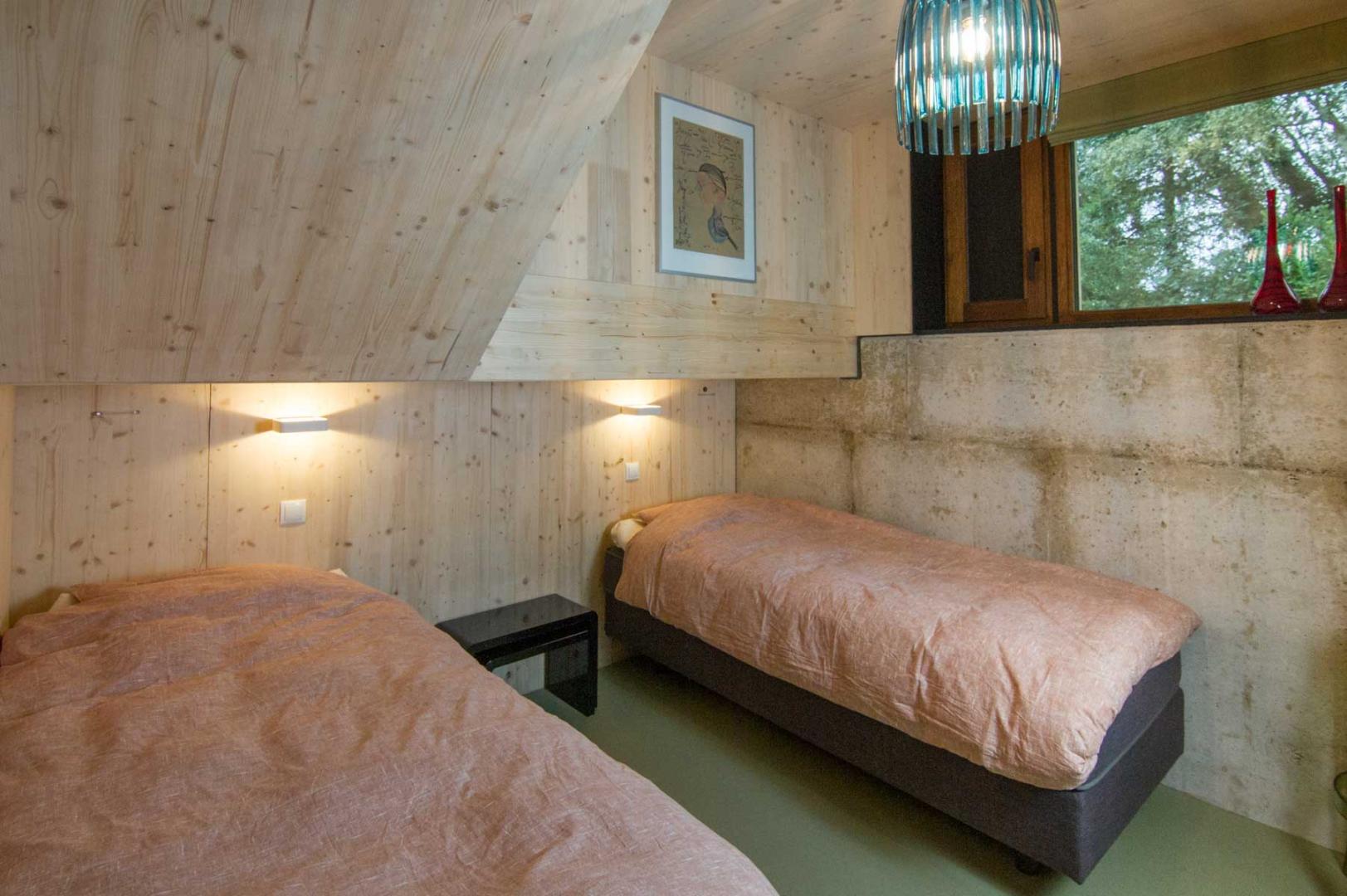 Er valt een zee van licht in het souterrain met twee ruime slaapkamers, een kleine badkamer en bijkeuken. In de grote slaapkamer is er een nis met daarin een opklapbaar stapelbed. Zo kan deze kamer in een handomdraai veranderd worden van een ruime tweepersoonskamer naar een slimme vierpersoonskamer.