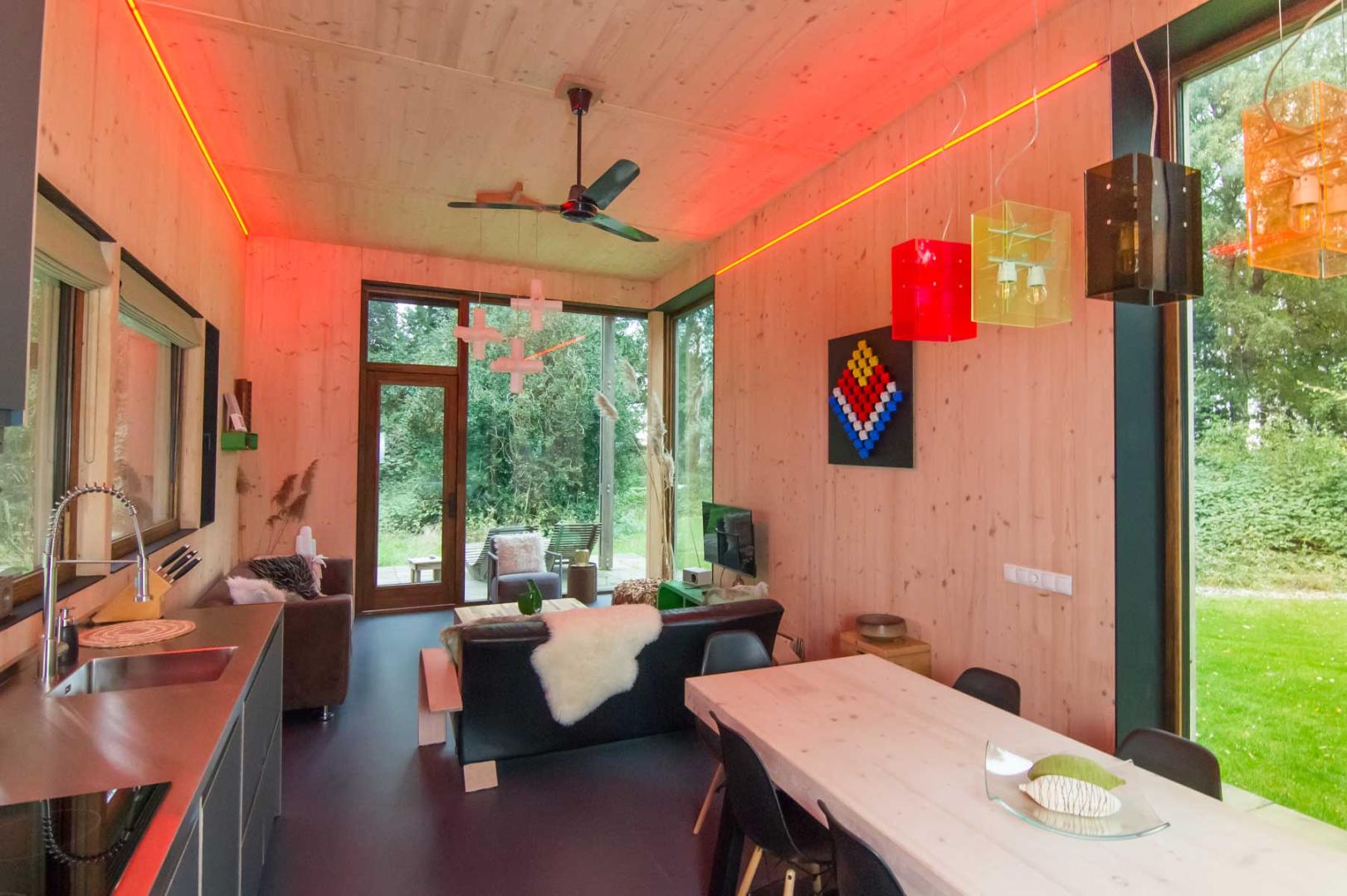 Paviljoen Esch is een stijlvol eco vakantiehuis aan een eeuwenoud zandpad op een weelderige es. Het paviljoen staat vrijstaand op een privéterrein van bijna 5000 vierkante meter. In de rechtervleugel van het paviljoen kun je met een paar traptreden omhoog naar de bel-etage of naar beneden naar het souterrain. Waar de rechtervleugel als een slimme puzzel in elkaar zit, is de linkervleugel juist één ruimte met een hoge living van vier meter hoog.