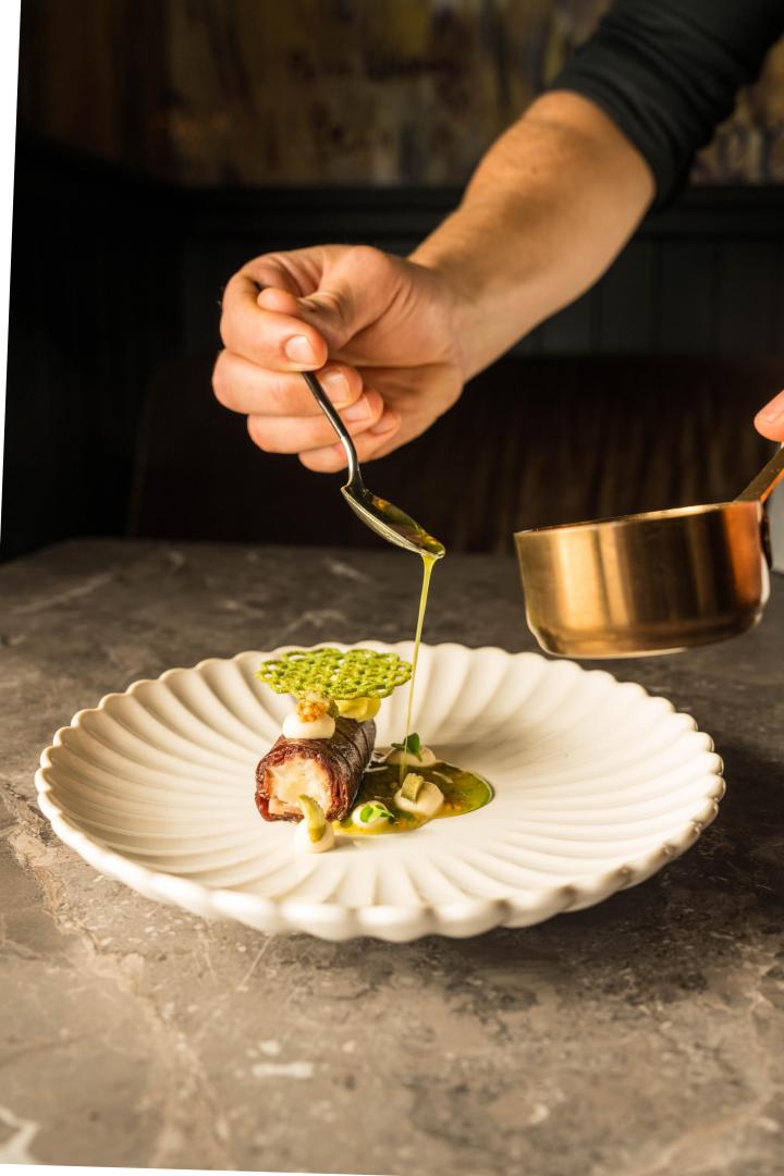 Bij Restaurant De Jaeger komen passie, innovatie en gastvrijheid samen in een unieke culinaire totaalervaring. Chef-kok en eigenaar Joeri Hukker ademt fine dining. Zijn toewijding aan het vak begon op jonge leeftijd en groeide uit tot een levenslange missie om zijn liefde voor koken te delen. Nu verwezenlijkt hij zijn grote droom: een eigen restaurant en hotel in het hart van Ruurlo, waar gastronomie en gastvrijheid hand in hand gaan. Met een diep respect voor seizoensgebonden ingrediënten creëert Joeri verrassingsmenu’s die de zintuigen prikkelen. Verwacht geen standaard menukaart, maar een viergangenmenu dat zich volledig laat leiden door wat het seizoen te bieden heeft. Voor wie wil, is er de mogelijkheid om dit uit te breiden naar zes gangen. Elk gerecht is een meesterwerk waarin klassieke technieken en moderne stijlen elkaar omarmen. De warme, nuchtere gastvrijheid van het jonge en enthousiaste team creëert een sfeer waarin iedere gast zich thuis voelt. Voor wie op zoek is naar een extra bijzonder moment, biedt De Jaeger twee private dining rooms, elk met plaats voor zes of acht personen, samen goed voor veertien gasten. De kamers zijn verbonden door een tussendeur die geopend kan worden, waardoor er flexibiliteit is voor grotere groepen. Met De Jaeger wilt Joeri niet alleen zijn passie voor koken delen, maar ook een totaalervaring bieden waarin alles klopt.