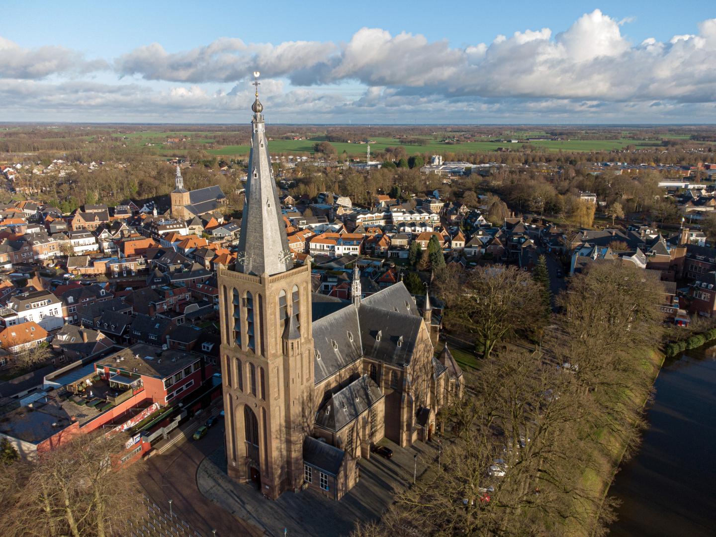 De bijna 75 meter hoge toren van de R.K. Calixtusbasiliek is al van verre zichtbaar en vormt een herkenningspunt in het hart van Groenlo.