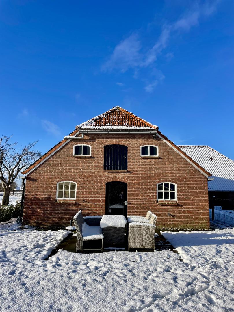 Maar dat is nog niet alles. Buiten beschikt De Veldsnijder over een ruime privé tuin met een terras en loungeset. Om het buitenleven compleet te maken kunnen gasten gebruik maken van de barbecue of van de vuurschaal om te kijken naar de prachtige sterren of zonsondergang. Naast kippen en geiten zijn er op het erf ook andere dieren te vinden, waaronder hond Ted, kater Tommy en enkele paarden.