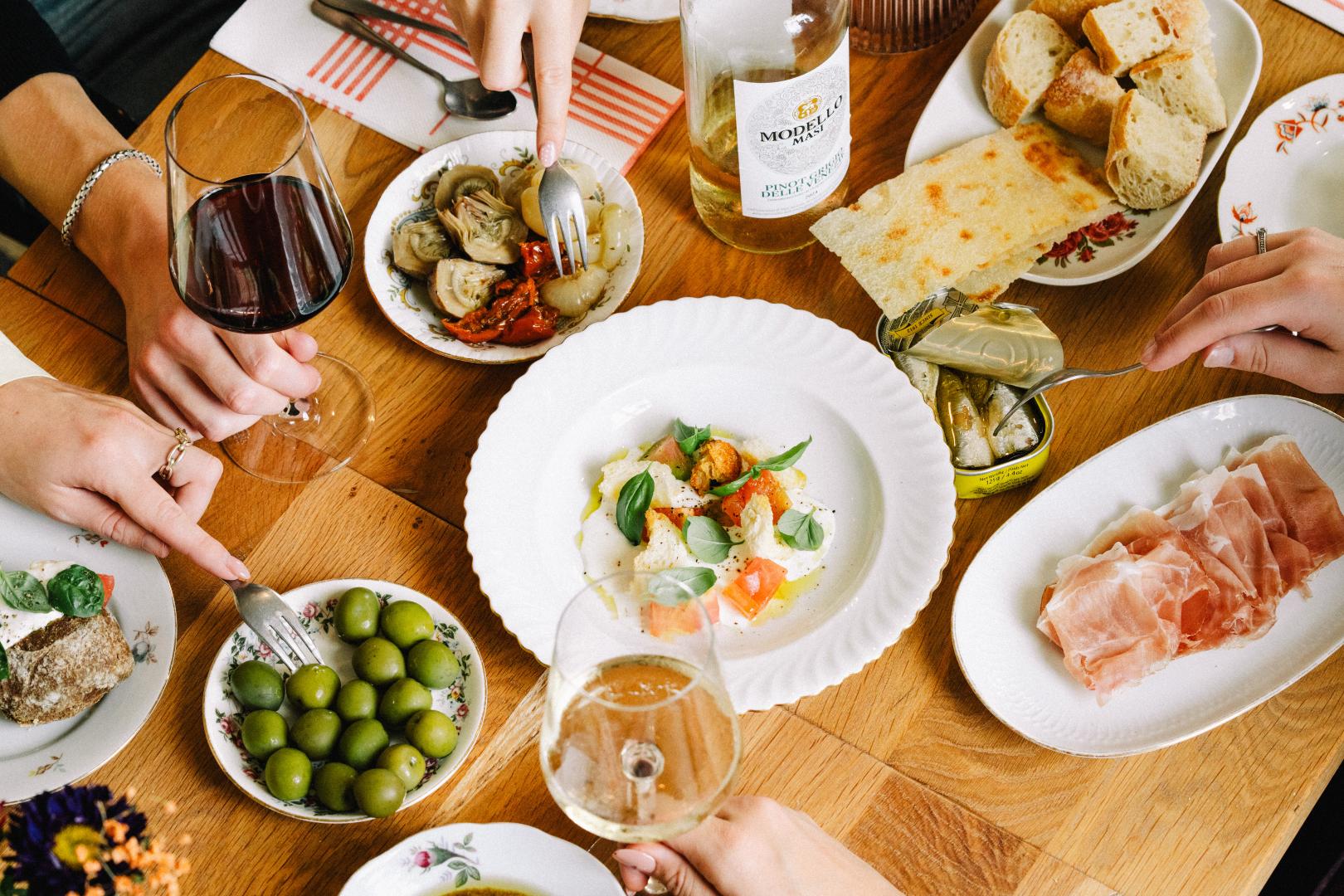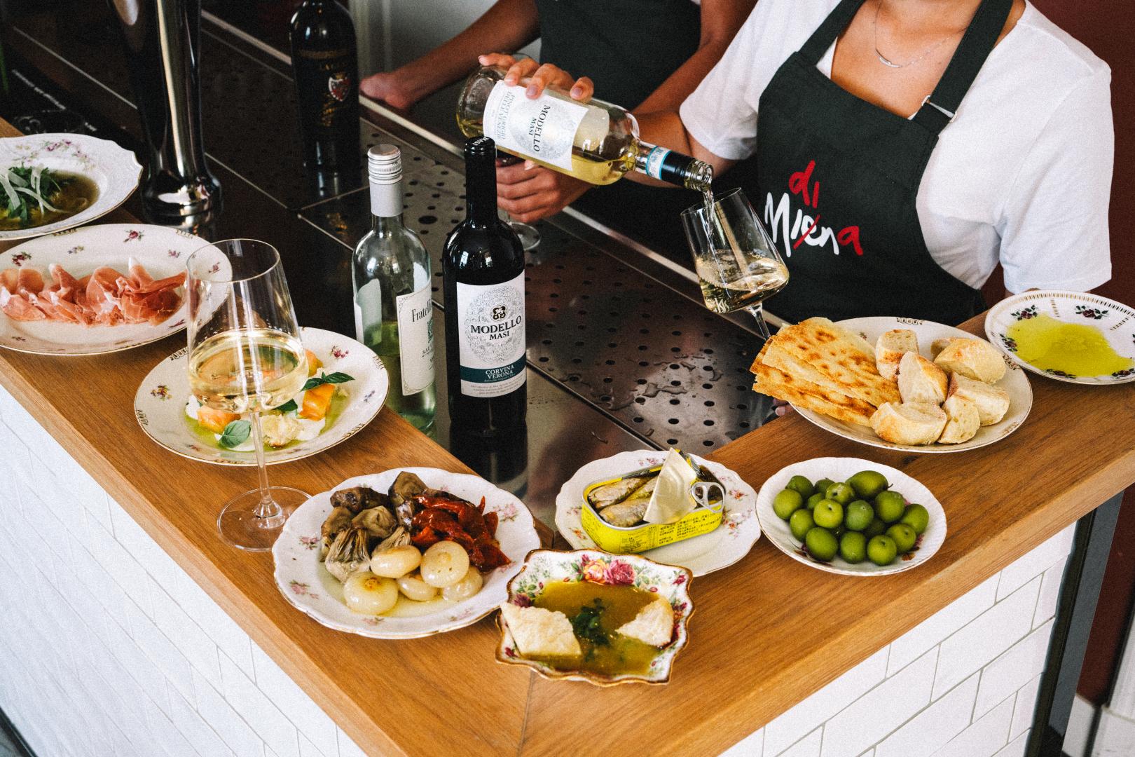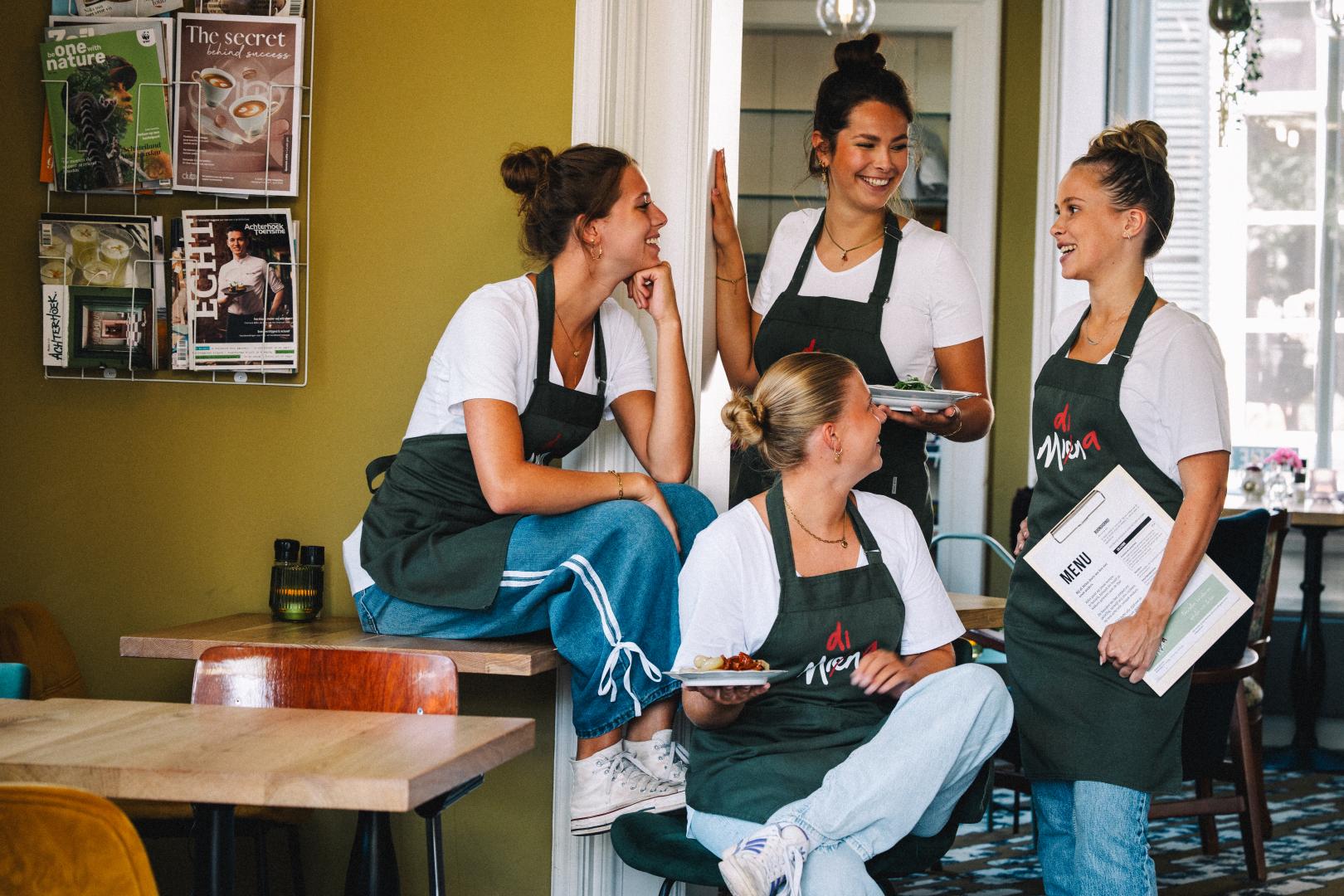 Je begint hier met ontbijt, blijft hangen voor de lunch of high tea en eindigt bij de borrel. Ciabatta’s belegd met oogst uit de eigen tuin van de Buitenplaats in Doetinchem, Italiaanse drankjes aan de bar, happen die je laten twijfelen tussen delen of alles zelf opeten. Of je nu met een groep aanschuift aan de lange tafel, of juist met je lief in een hoekje kruipt — di Mina voelt intiem, ongekunsteld en altijd een beetje alsof je in een goed bewaard geheim bent gestapt.